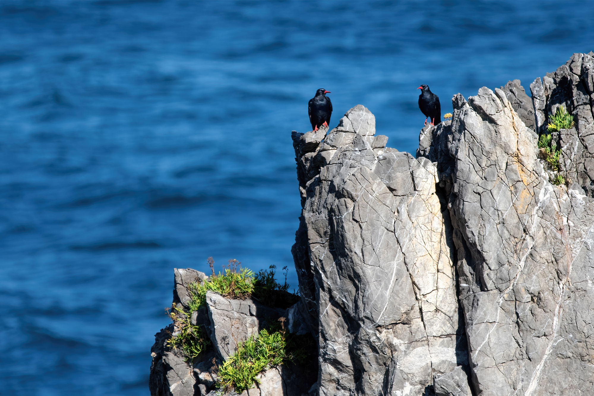 Chough (where present), plus ravens, kestrels, and seabirds offshore